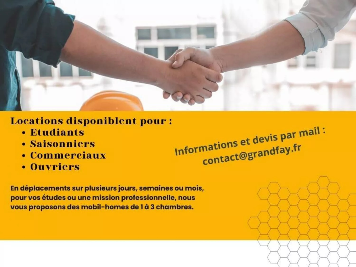 En déplacement sur plusieurs jours, plusieurs semaines ou plusieurs mois pour vos études ou une mission professionnelle, le camping du grand Fay vous propose des mobil-homes à la location.